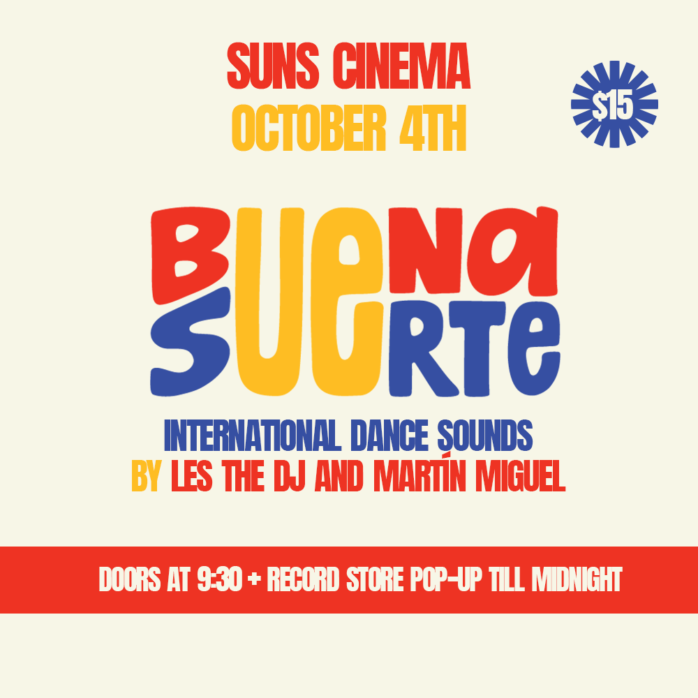 Buena Suerte is a joint venture between DC music curators Les The DJ and Martín Miguel, rooted in their shared love of international discotheque music and community building. The duo will soon be opening a pop-up record/zine shop in Downtown DC, and this outing at Suns serves as a sneak peak; offering DJ sets from both, as well as a mini record market.